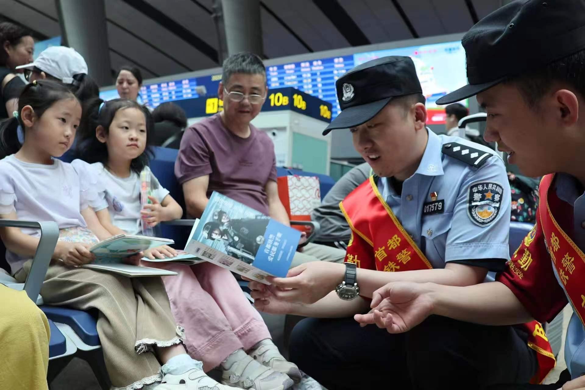 北京鐵路警方提示,暑運期間火車站的客流量較大,旅客出行時一定要看護(hù)好隨行兒童,切莫讓兒童離開父母視線自行活動。一旦發(fā)生兒童與家長走散等突發(fā)情況時,家長要第一時間聯(lián)系鐵路工作人員或者民警尋求幫助。