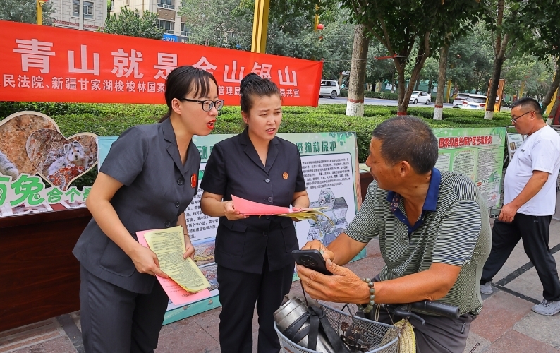 8月15日是全國(guó)生態(tài)日,當(dāng)天,新疆精河縣人民法院、新疆甘家湖梭梭林國(guó)家級(jí)自然保護(hù)區(qū)管理局精河管理分局工作人員聯(lián)合走進(jìn)精河縣主要街道,以擺放展板、發(fā)放宣傳資料等方式,向廣大群眾開(kāi)展法律知識(shí)宣傳活動(dòng)。