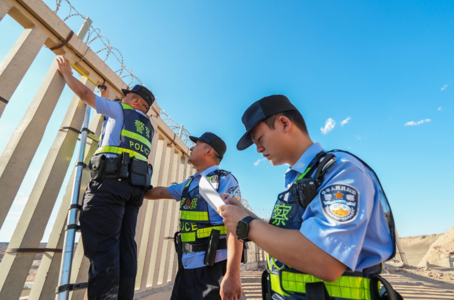 圖為8月27日,哈密公安處吐哈站派出所民警對(duì)轄區(qū)線路開(kāi)展隱患排查,確保列車(chē)運(yùn)行安全暢通。