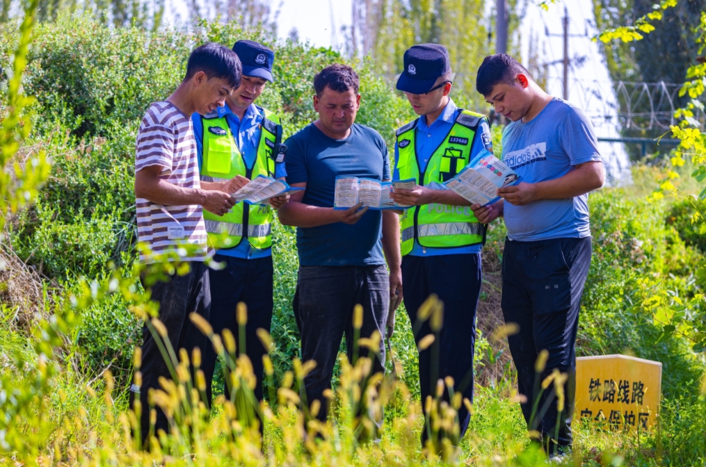 近日,新疆喀什地區(qū)鐵路線路周邊無(wú)花果、葡萄相繼迎來“豐收季”,烏魯木齊鐵路公安局喀什公安處組織民輔警走進(jìn)田間地頭、林圃果園,開展“鐵警護(hù)豐收 助農(nóng)話安全”普法宣傳活動(dòng),通過警用車載喇叭播放鐵路安全知識(shí)、開展矛盾糾紛排查化解工作、現(xiàn)場(chǎng)普法答疑等方式,結(jié)合典型案例,向群眾普及鐵路安全知識(shí),講解電信網(wǎng)絡(luò)詐騙類型及防范技巧,為“采摘季”增添安全保障,全力守護(hù)群眾“錢袋子”。