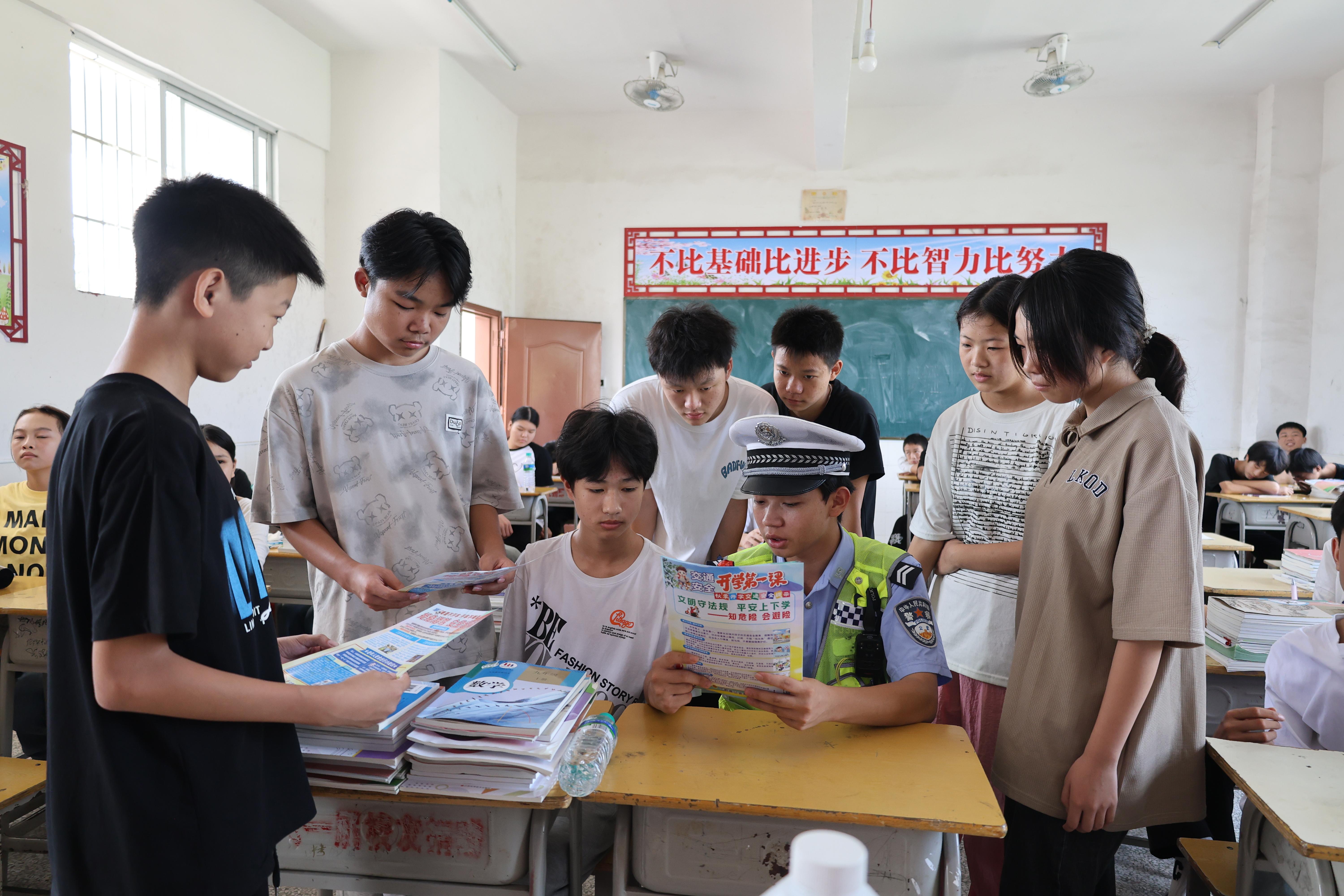 新學(xué)期伊始,江西省寧都縣公安局交管大隊組織民輔警走進(jìn)轄區(qū)各學(xué)校,集中開展入校宣講,通過播放典型案例視頻、互動交流、現(xiàn)場答疑等形式,以“知危險、會避險”為主題上好交通安全“開學(xué)第一課”。同時,寧都交警加強(qiáng)上下學(xué)期間的警力值守,做好校園周邊道路疏堵保暢,全力守護(hù)學(xué)生安全出行。