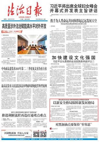 《法治日?qǐng)?bào)》記者了解到,“十四五”以來(lái),湖北政法機(jī)關(guān)認(rèn)真落實(shí)總體國(guó)家安全觀,全力以赴防風(fēng)險(xiǎn)、保安全、護(hù)穩(wěn)定、促發(fā)展,堅(jiān)定不移抓法治、優(yōu)環(huán)境、促發(fā)展,為全省加快建成中部崛起重要戰(zhàn)略支點(diǎn)提供了有力安全保障和法治支撐。