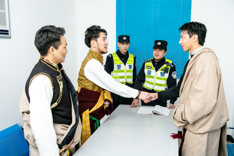 為了尊重藏族習(xí)俗,派出所的民警標(biāo)配是“四個(gè)一”:包里隨時(shí)裝著一條哈達(dá)、一塊茶磚,見(jiàn)面一句藏語(yǔ)問(wèn)候,轄區(qū)至少交一個(gè)藏族朋友。所里會(huì)說(shuō)藏語(yǔ)、懂得習(xí)俗的“雙語(yǔ)警官”逐漸多了起來(lái),他們奔走在街區(qū)、院落、醫(yī)院,遇到矛盾糾紛時(shí),用鄉(xiāng)音鄉(xiāng)情化解于無(wú)形,用象征感情的白色哈達(dá)換回了象征尊重的黃色哈達(dá)。