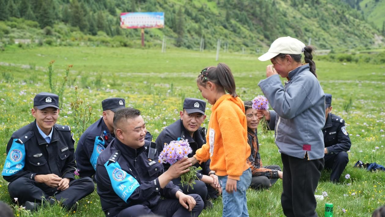 他要求派出所大門24小時都為群眾敞開,保證服務不缺位;為找到牧民丟失的牦牛,他帶領(lǐng)戰(zhàn)友兩天兩夜翻雪山,住牛棚,贏得原創(chuàng)《雪域之光》MV的禮贊;為保護牧民牦牛不被野狼侵擾,他帶領(lǐng)戰(zhàn)友徹夜守護。真心一定可以換來民心。寒冬時節(jié),群眾為派出所送來取暖用的牛糞;盛夏時節(jié),孩子們?yōu)樗蛠碛H手采摘的花環(huán);花海中的黑帳篷,是他最美的偶遇;轄區(qū)群眾最擔心的事,就是害怕他調(diào)走......這就是對為民快要禿了頭的“小高”所長追光路上最好的禮遇。