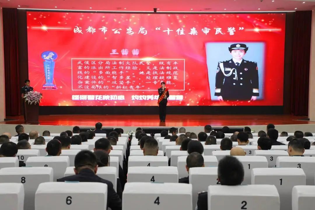 “鏗鏘警花映初心,灼灼芳華綻警營。武侯區(qū)分局法制大隊的民警王茜茜,是活躍在公安法制隊伍里的‘多面能手’,是執(zhí)法規(guī)范化建設(shè)的‘智多星’……她是一專多能、不設(shè)局限的‘斜杠青年’,在浩瀚的知識宇宙里永攀高峰、不斷進(jìn)取,先后通過了國家法律職業(yè)資格考試、高級執(zhí)法資格考試,考取了教師資格證,申請了公職律師……她是成都市公安局‘十佳案審民警’——王茜茜!”