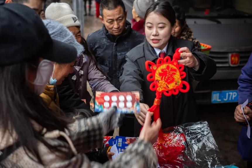 在普法的過程中,干警們?yōu)槿罕妿タ彀逭f唱民法典,歡快的節(jié)奏與人聲鼎沸的喧囂完美融合,成為最美新春交響樂。同時,還現場組織開展法律常識有獎問答,將法律知識融入活動,村民們既學習了法律知識,也拿到了實用小禮品,現場“法治”氛圍感拉滿。