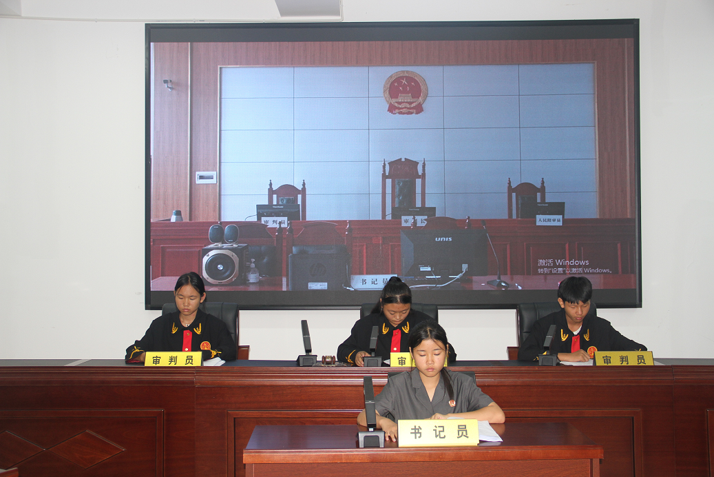 “模擬法庭”環(huán)節(jié),在“審判長”的一句“現(xiàn)在開庭!”及清脆的法槌敲擊聲下,一場模擬法庭的“庭審”正式拉開序幕!庭審中,參與的學生擔任審判長、審判員、公訴人、書記員、法定代理人、辯護人、被告人、法警等角色,宣布法庭紀律,核對被告人身份信息,進行法庭調(diào)查、法庭辯論,當庭宣判。整個過程井然有序、嚴謹規(guī)范,完整再現(xiàn)了審判庭審過程。一場緊張激烈的模擬法庭,以“劇”說法,以“案”警心,讓同學們在角色扮演中體驗法律的威嚴與公正。