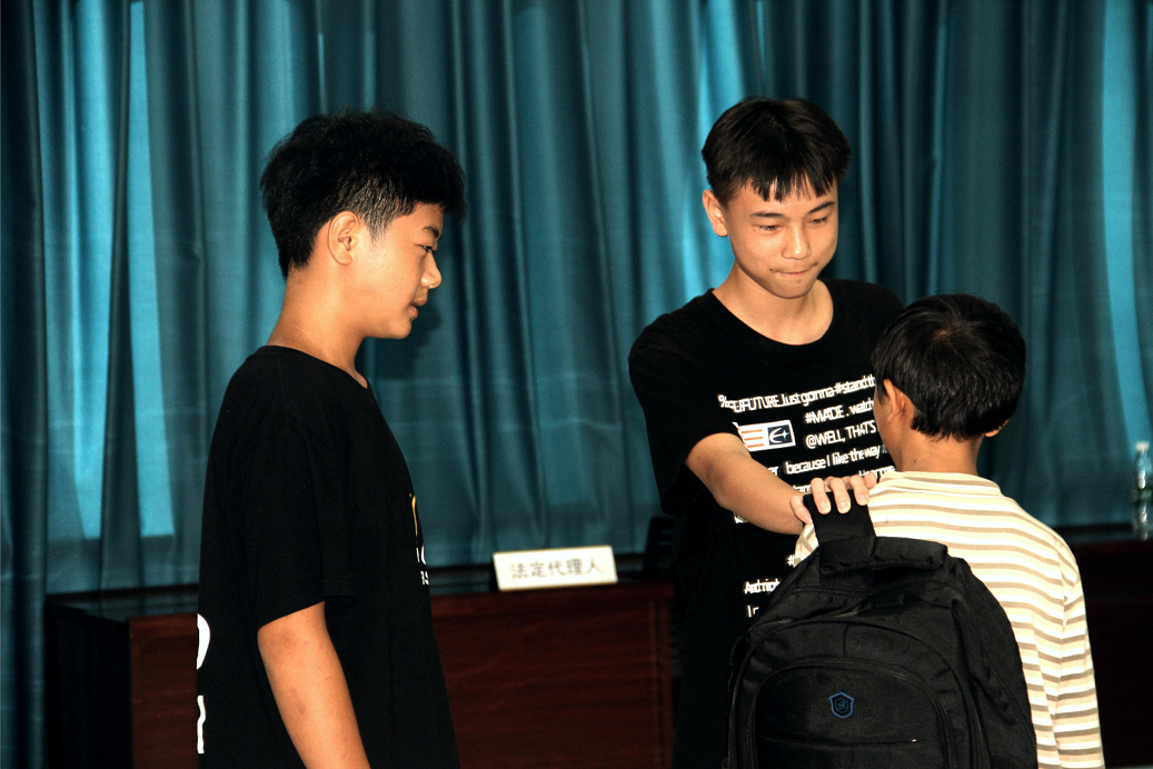活動現(xiàn)場,通過播放校園欺凌法治宣傳視頻、情景再現(xiàn)小短劇、模擬法庭、現(xiàn)場問答等方式逐一展開,此次活動形式新穎,貼合實際,能夠充分的吸引學生參與其中。精心編排的“校園欺凌”情景劇,將犯罪的經(jīng)過完美演繹,這不僅是一次表演,更是一堂深刻的法治教育課、生命教育課。