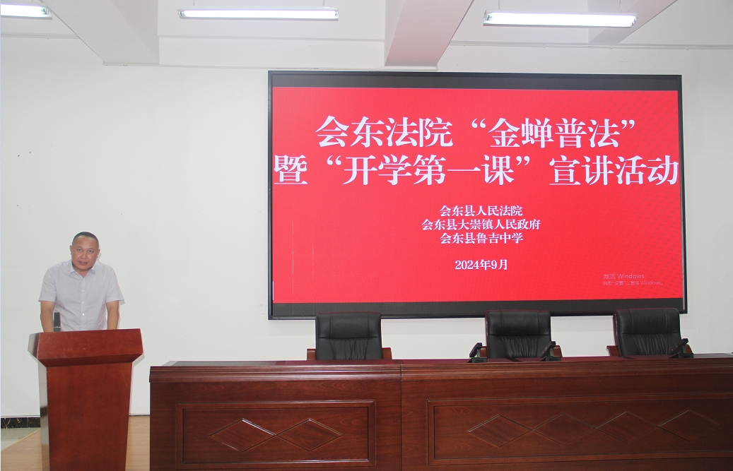 日前,四川省涼山州會東縣人民法院金蟬普法宣傳隊聯(lián)合大崇鎮(zhèn)人民政府、魯吉中學舉辦了一場“金蟬普法暨法治進校園開學第一課”宣講活動。會東法院黨組書記、院長朱兵,大崇鎮(zhèn)黨委書記李興祥、會東法院黨組成員、副院長何靖、魯吉中學副校長趙天富出席活動,魯吉中學師生代表130余人參加活動。