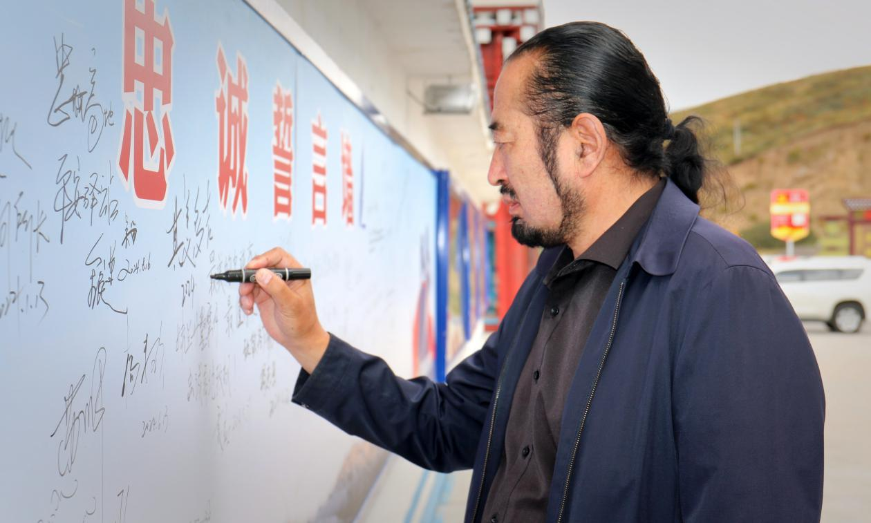 “缺少的是氧氣,擁有的是忠誠!”有感于忠誠誓言的感召,正值中秋佳節(jié)之際,剛和劉鵬一道參加學(xué)習(xí)貫徹黨的二十屆三中全會精神勞模工匠宣講活動(dòng)回來的“時(shí)代楷?!逼涿蓝嗉?,途徑洛戈梁子警務(wù)站時(shí),專門打卡致敬忠誠高地,并在忠誠誓言墻上留言,帶來了中秋的祝福。