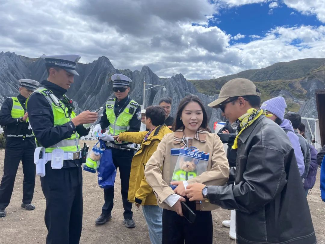 10月1日,在國慶“黃金周”首日,道孚縣八美鎮(zhèn)墨石公園景區(qū)迎來了第一批打卡的游客。道孚縣公安局交警大隊(duì)也為遠(yuǎn)道而來的客人們,準(zhǔn)備了一份精美的小禮品,包含“交警小熊”“水杯”“雨傘”等,游客們只需要回答交警現(xiàn)場(chǎng)開展的“假期平安行·交通安全知識(shí)競(jìng)賽”,答對(duì)題目就能帶著禮品繼續(xù)環(huán)游甘孜。