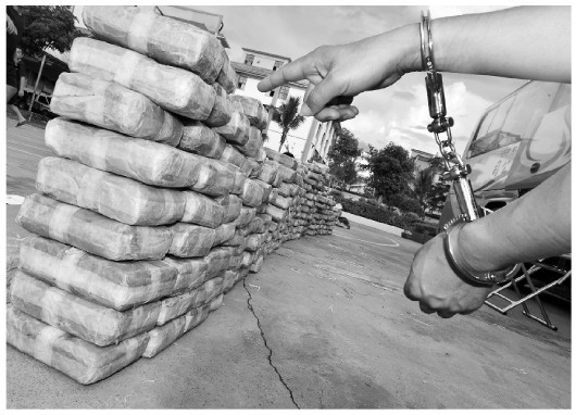 6月7日,云南西雙版納邊境管理支隊破獲一起特大運(yùn)輸毒品案,在一輛大巴車上查獲毒品可疑物139.774公斤。圖為嫌疑人指認(rèn)所運(yùn)輸?shù)亩酒房梢晌?。法制日報記?石飛法制網(wǎng)通訊員 韋立鵬 攝
