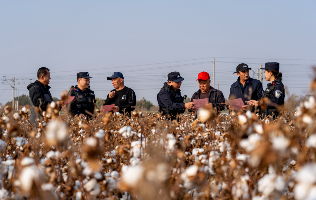 正值新疆棉花豐收季,10月21日,烏魯木齊鐵路公安處呼圖壁站派出所組織民警深入轄區(qū)棉花地與軋花場(chǎng)向棉農(nóng)宣傳愛(ài)路護(hù)路及消防安全知識(shí),筑牢棉區(qū)安全防線(xiàn)。