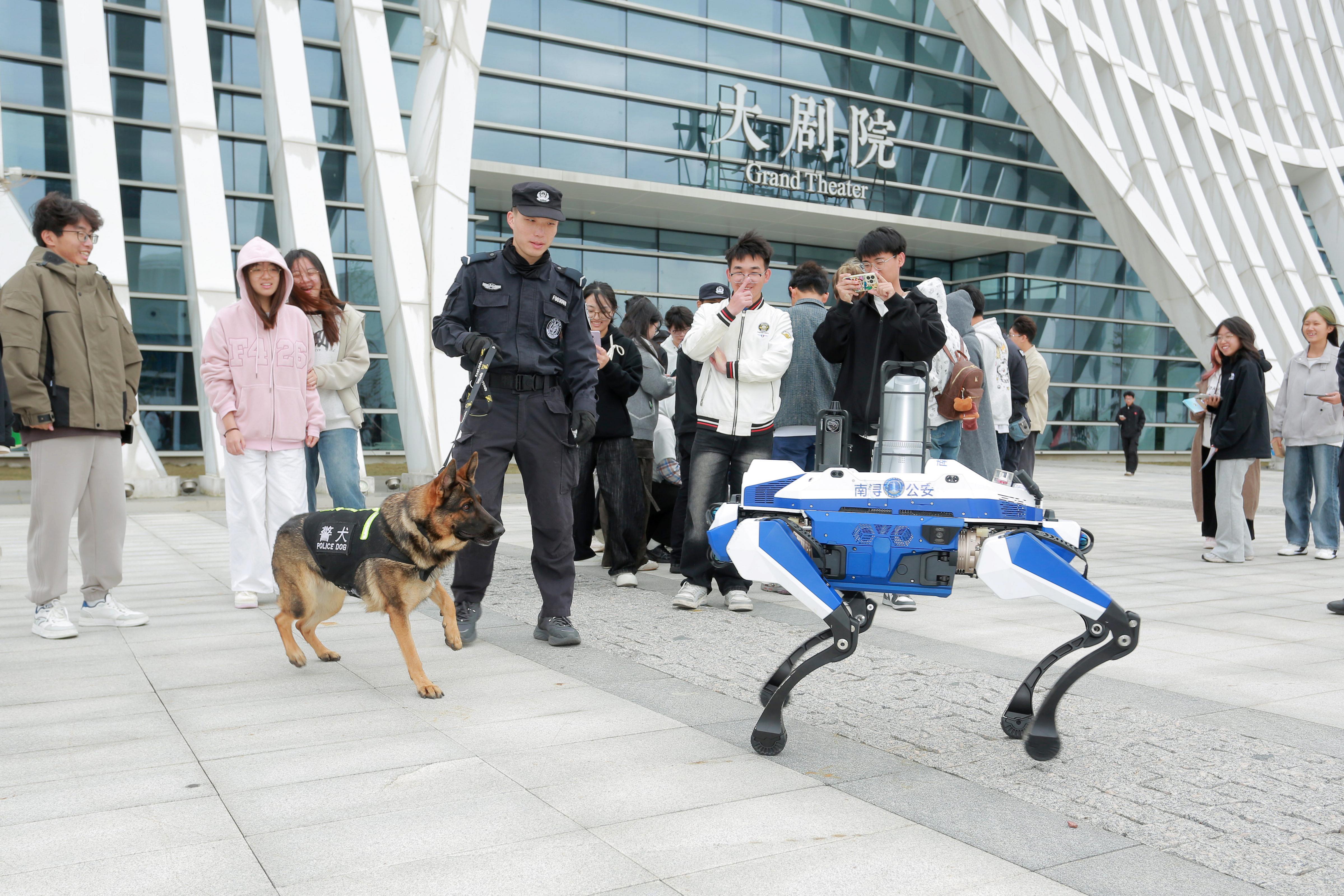學(xué)生小王說:“第一次近距離看到緝毒犬和機器狗,感覺特別震撼!緝毒犬特別靈敏,馴導(dǎo)員剛把藏了模擬毒品的箱子擺好,它立馬就聞著味兒湊過去,尾巴還輕輕晃,又專業(yè)又可愛;機器狗更讓我眼前一亮,它能靈活穿梭在市集的桌椅之間,攝像頭實時傳輸畫面,還能根據(jù)指令停下來‘檢查’,科技感滿滿?!?/p>