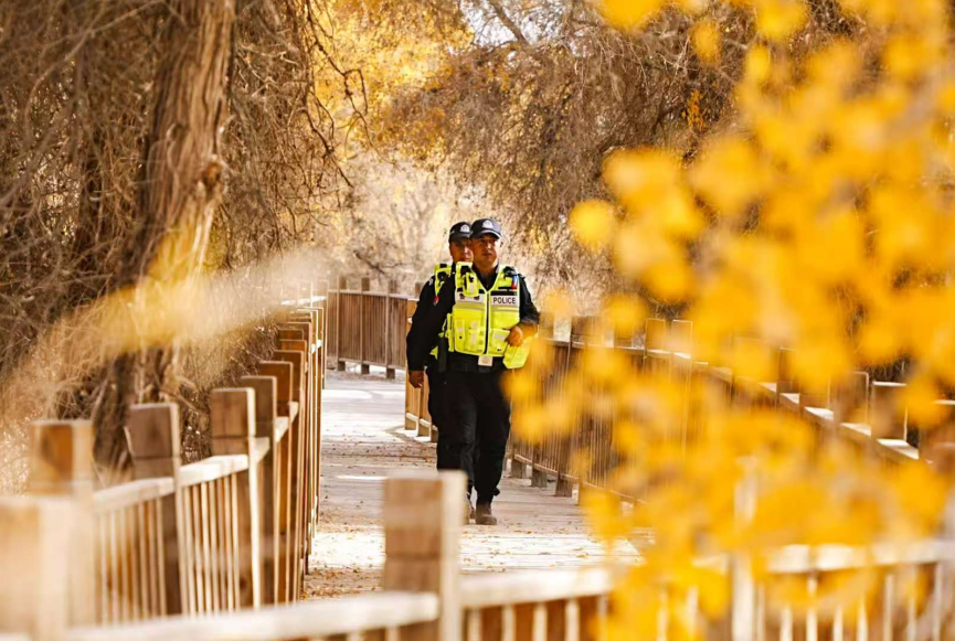 為確保此次活動安全、有序、圓滿進行,沙雅縣公安局全警動員,以“守護文旅新動能,筑牢安全防線”為目標(biāo),提前謀劃,周密部署,聯(lián)合文旅、應(yīng)急、交通等多部門協(xié)同作戰(zhàn),為文旅盛會的順利舉行提供了堅實保障。金色胡楊與閃耀警徽在沙雁洲交相輝映,構(gòu)成了一道獨特而亮麗的風(fēng)景線。