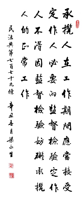民法典第七百七十九條 承攬人在工作期間,應當接受定作人必要的監(jiān)督檢驗。定作人不得因監(jiān)督檢驗妨礙承攬人的正常工作。