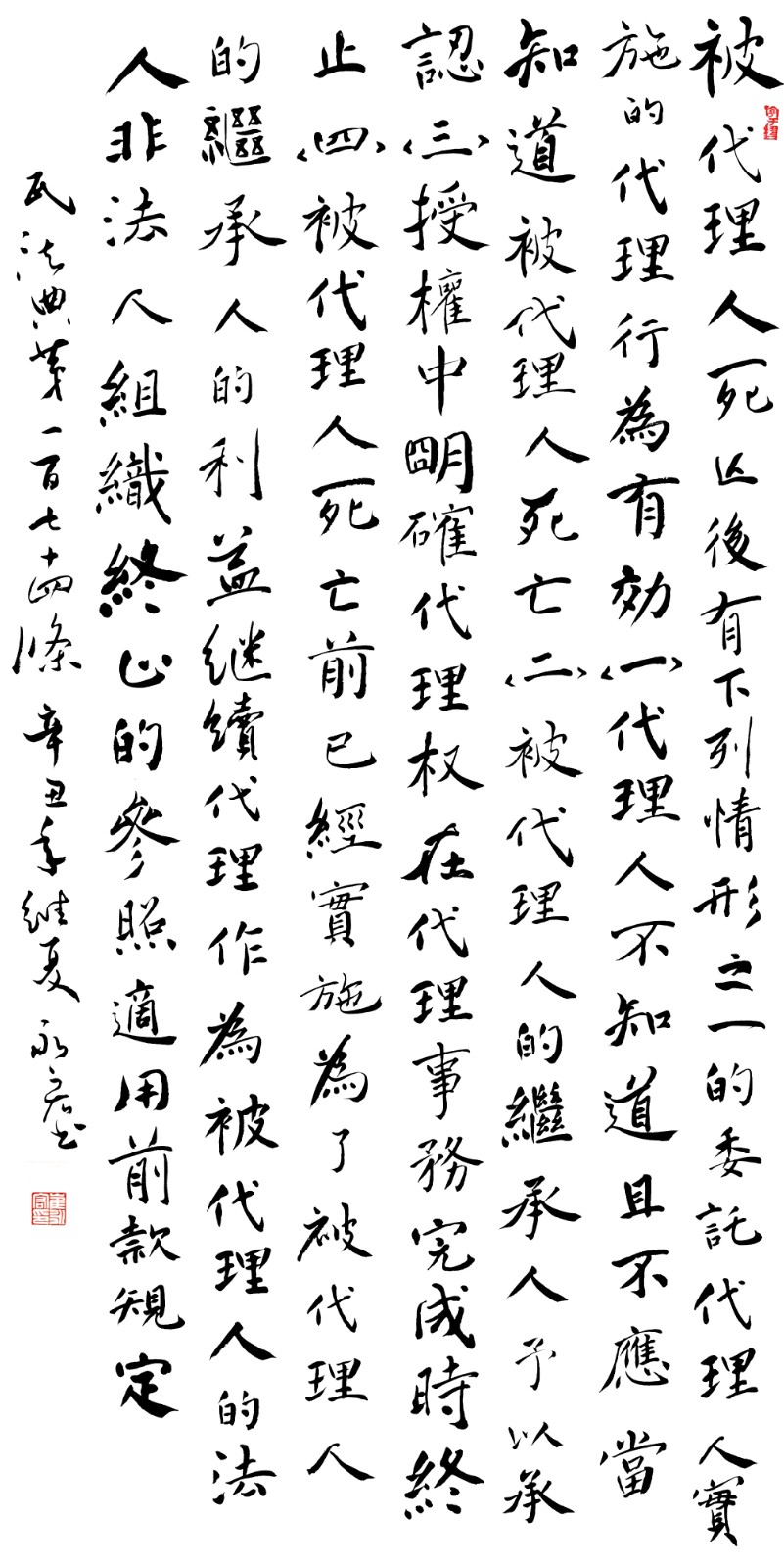 民法典第一百七十四條 被代理人死亡后,有下列情形之一的,委托代理人實(shí)施的代理行為有效: