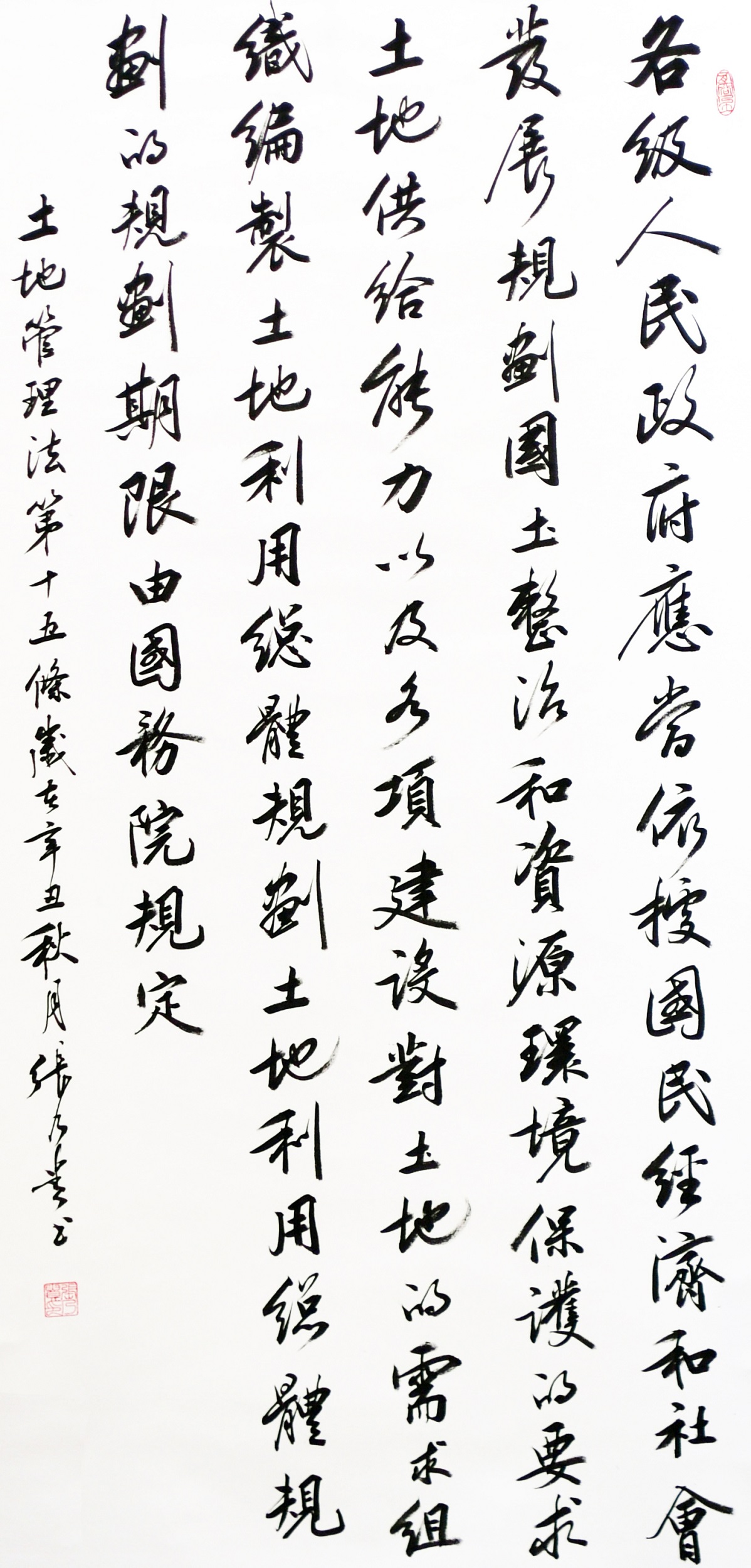 繼1600余位書(shū)法家參與書(shū)寫(xiě)《中華人民共和國(guó)民法典》全部1260條法條之后,法治日?qǐng)?bào)社聯(lián)合自然資源部法規(guī)司、自然資源部書(shū)畫(huà)研究會(huì)和北京昌平書(shū)法家協(xié)會(huì),將筆端對(duì)準(zhǔn)土地管理“一法一條例”,即《中華人民共和國(guó)土地管理法》和《中華人民共和國(guó)土地管理法實(shí)施條例》。