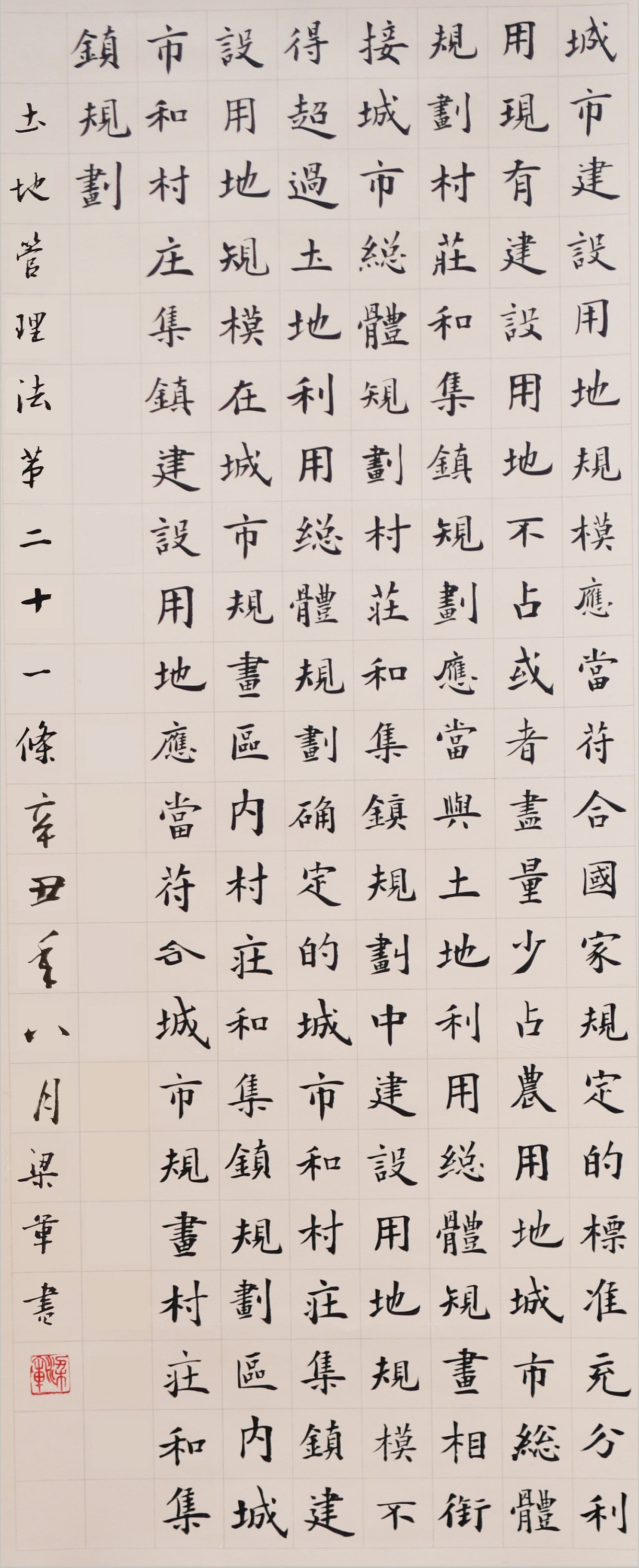 繼1600余位書法家參與書寫《中華人民共和國民法典》全部1260條法條之后,法治日報(bào)社聯(lián)合自然資源部法規(guī)司、自然資源部書畫研究會和北京昌平書法家協(xié)會,將筆端對準(zhǔn)土地管理“一法一條例”,即《中華人民共和國土地管理法》和《中華人民共和國土地管理法實(shí)施條例》。