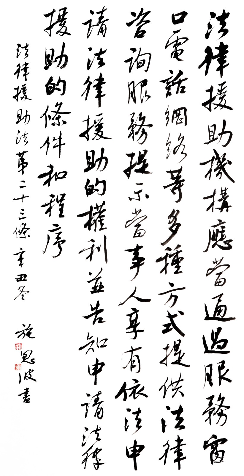 “書·法”活動旨在為創(chuàng)新法治宣傳教育,多開一點(diǎn)腦洞、多花一點(diǎn)心思、多出一點(diǎn)力量、多做一點(diǎn)貢獻(xiàn),引領(lǐng)和推動更多的人拿起筆來學(xué)法、寫法,在不斷“書·法”過程中,提升自身的法治素養(yǎng),在全社會弘揚(yáng)法治精神。