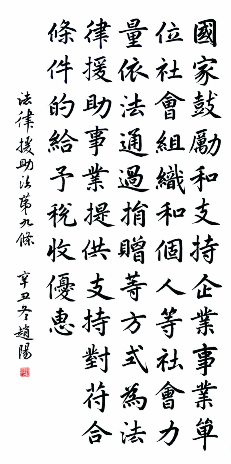 法律援助法第九條 國(guó)家鼓勵(lì)和支持企業(yè)事業(yè)單位、社會(huì)組織和個(gè)人等社會(huì)力量,依法通過(guò)捐贈(zèng)等方式為法律援助事業(yè)提供支持;對(duì)符合條件的,給予稅收優(yōu)惠。