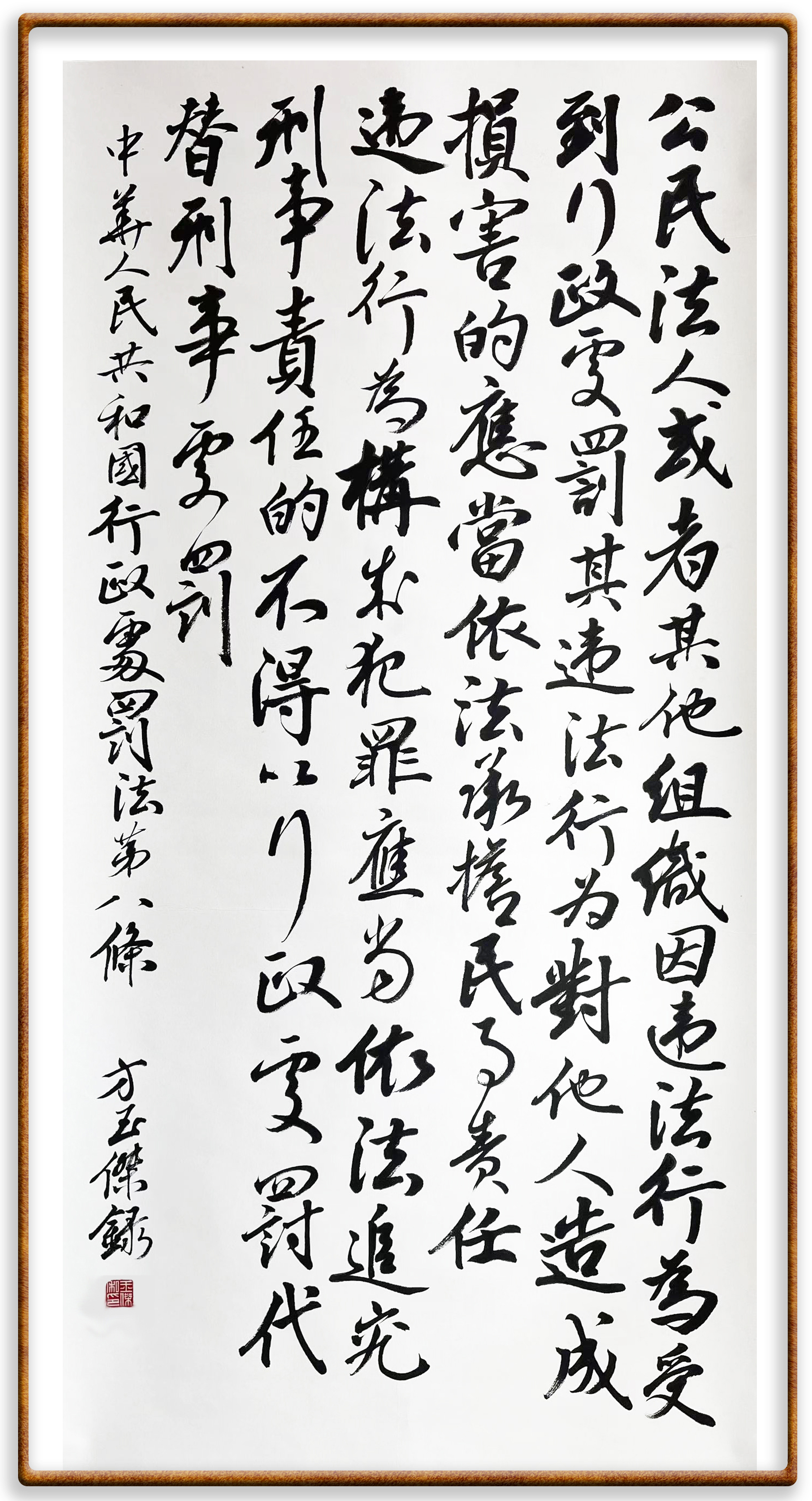 繼《中華人民共和國民法典》《中華人民共和國土地管理法》《中華人民共和國土地管理法實施條例》《中華人民共和國法律援助法》之后,法治日報社聯(lián)合北京市司法局、北京書法家協(xié)會,將筆端對準(zhǔn)《中華人民共和國憲法》和《中華人民共和國行政處罰法》。