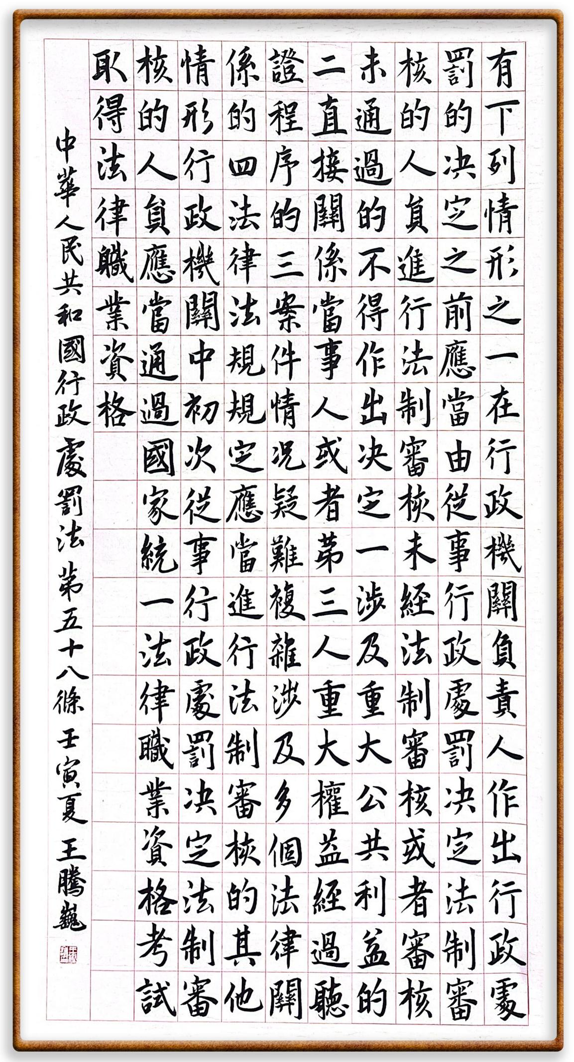 繼《中華人民共和國民法典》《中華人民共和國土地管理法》《中華人民共和國土地管理法實施條例》《中華人民共和國法律援助法》之后,法治日報社聯(lián)合北京市司法局、北京書法家協(xié)會,將筆端對準(zhǔn)《中華人民共和國憲法》和《中華人民共和國行政處罰法》。