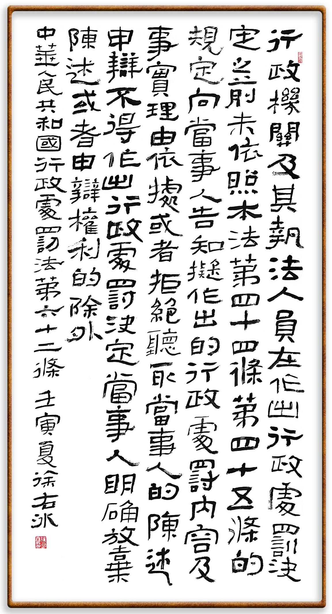 繼《中華人民共和國民法典》《中華人民共和國土地管理法》《中華人民共和國土地管理法實(shí)施條例》《中華人民共和國法律援助法》之后,法治日報(bào)社聯(lián)合北京市司法局、北京書法家協(xié)會(huì),將筆端對準(zhǔn)《中華人民共和國憲法》和《中華人民共和國行政處罰法》。
