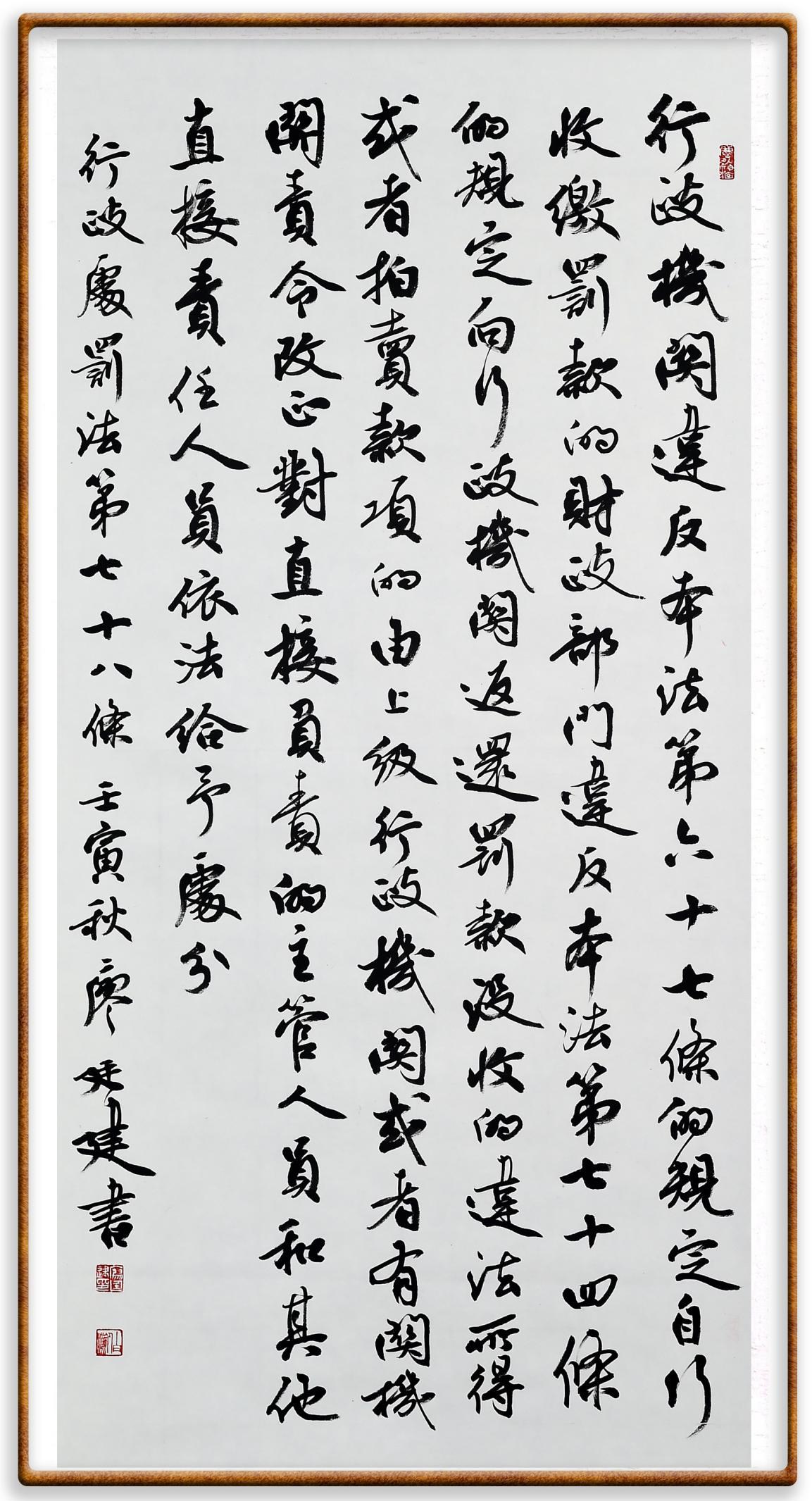 繼《中華人民共和國民法典》《中華人民共和國土地管理法》《中華人民共和國土地管理法實施條例》《中華人民共和國法律援助法》之后,法治日報社聯合北京市司法局、北京書法家協會,將筆端對準《中華人民共和國憲法》和《中華人民共和國行政處罰法》。