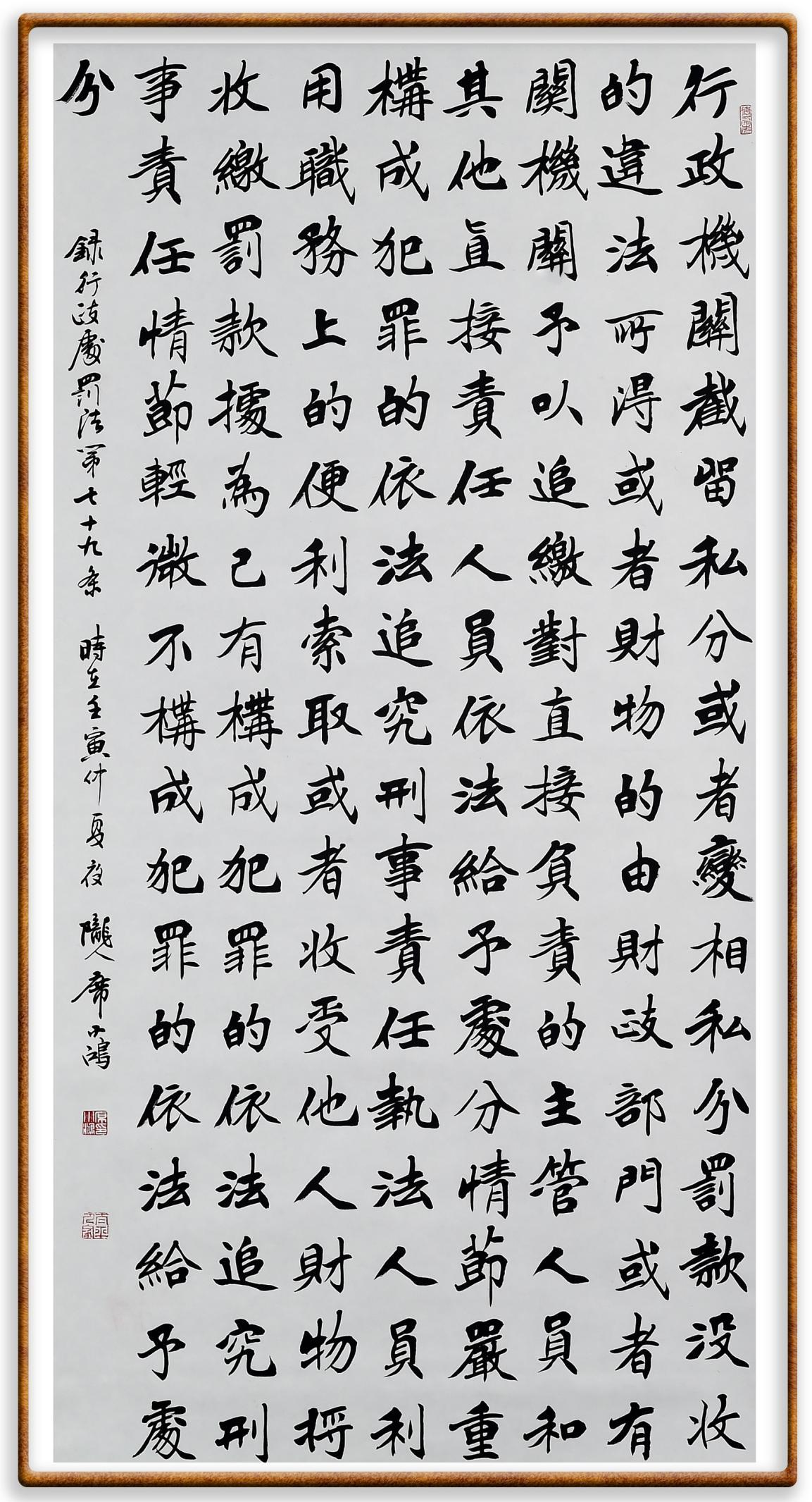 繼《中華人民共和國民法典》《中華人民共和國土地管理法》《中華人民共和國土地管理法實施條例》《中華人民共和國法律援助法》之后,法治日報社聯(lián)合北京市司法局、北京書法家協(xié)會,將筆端對準(zhǔn)《中華人民共和國憲法》和《中華人民共和國行政處罰法》。