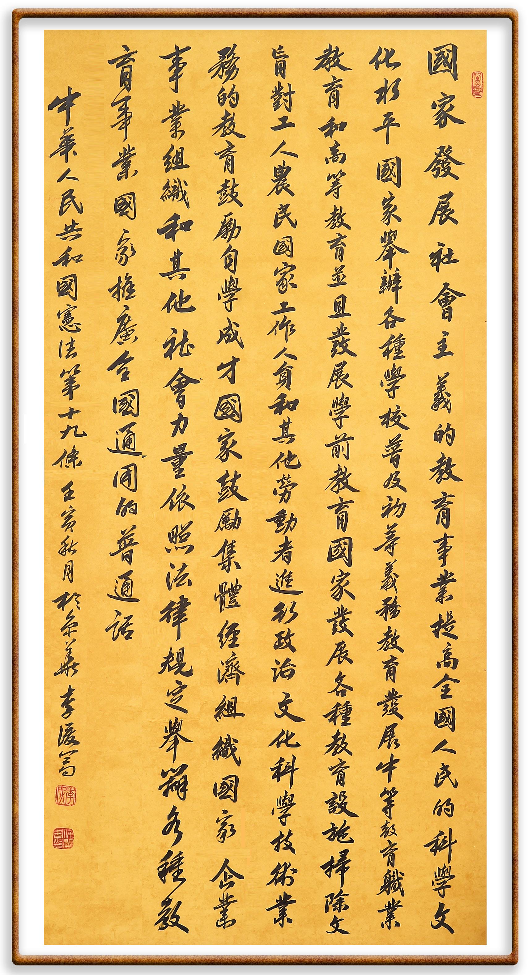 繼《中華人民共和國民法典》《中華人民共和國土地管理法》《中華人民共和國土地管理法實(shí)施條例》《中華人民共和國法律援助法》之后,法治日?qǐng)?bào)社聯(lián)合北京市司法局、北京書法家協(xié)會(huì),將筆端對(duì)準(zhǔn)《中華人民共和國憲法》和《中華人民共和國行政處罰法》。