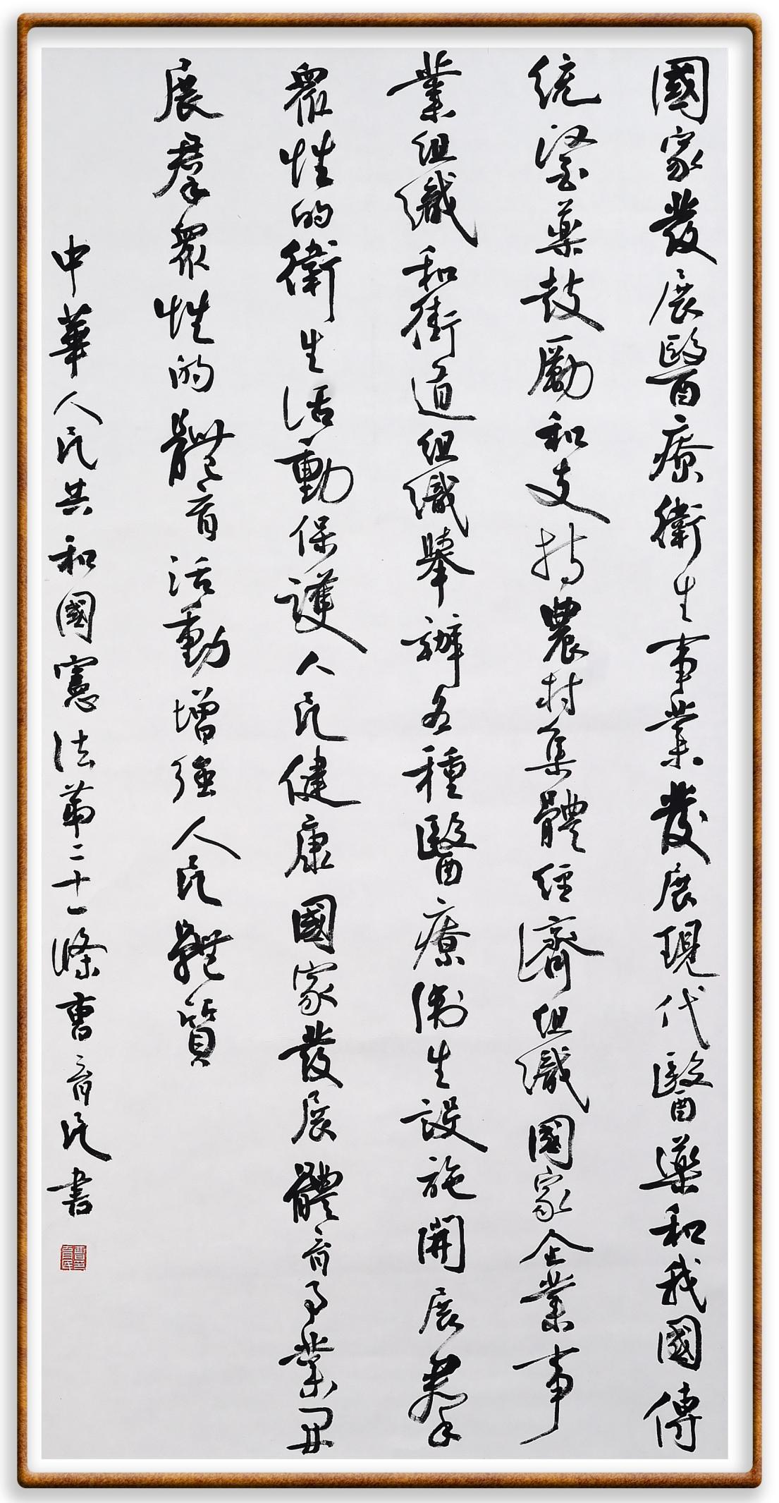 繼《中華人民共和國民法典》《中華人民共和國土地管理法》《中華人民共和國土地管理法實(shí)施條例》《中華人民共和國法律援助法》之后,法治日報(bào)社聯(lián)合北京市司法局、北京市書法家協(xié)會(huì),將筆端對準(zhǔn)《中華人民共和國憲法》和《中華人民共和國行政處罰法》。