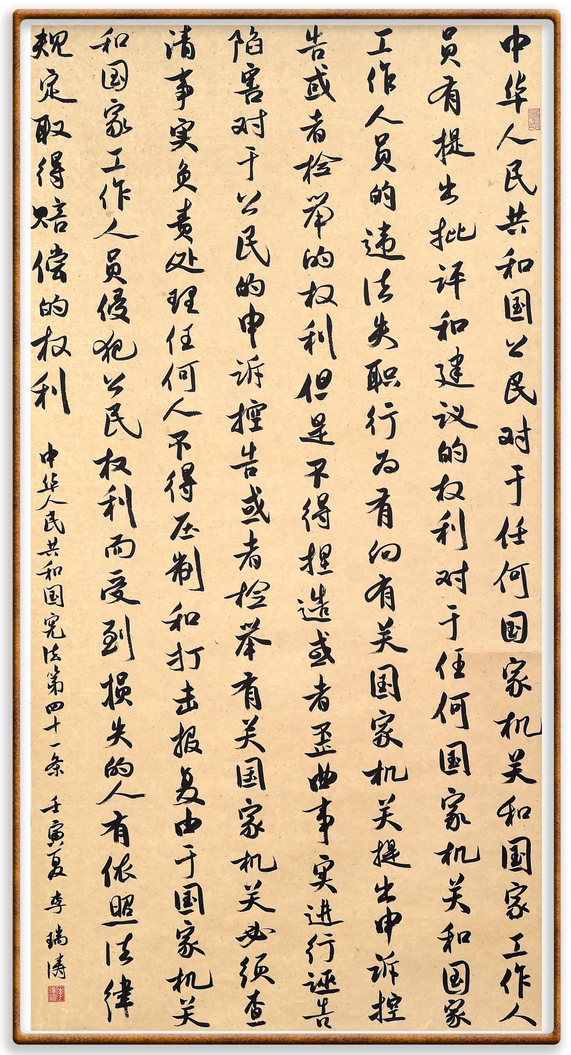 繼《中華人民共和國(guó)民法典》《中華人民共和國(guó)土地管理法》《中華人民共和國(guó)土地管理法實(shí)施條例》《中華人民共和國(guó)法律援助法》之后,法治日?qǐng)?bào)社聯(lián)合北京市司法局、北京市書(shū)法家協(xié)會(huì),將筆端對(duì)準(zhǔn)《中華人民共和國(guó)憲法》和《中華人民共和國(guó)行政處罰法》。