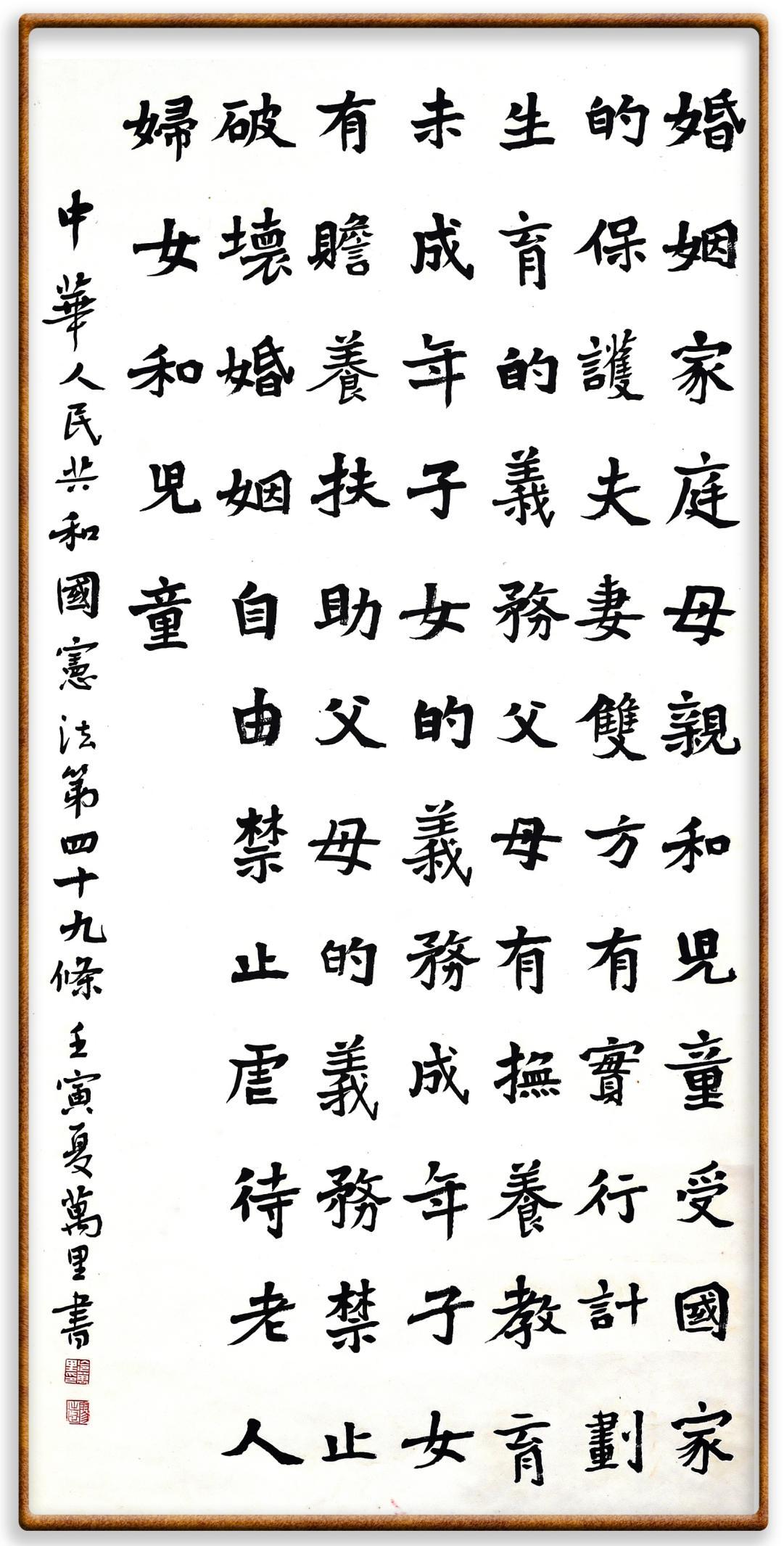 繼《中華人民共和國民法典》《中華人民共和國土地管理法》《中華人民共和國土地管理法實施條例》《中華人民共和國法律援助法》之后,法治日報社聯(lián)合北京市司法局、北京書法家協(xié)會,將筆端對準《中華人民共和國憲法》和《中華人民共和國行政處罰法》。