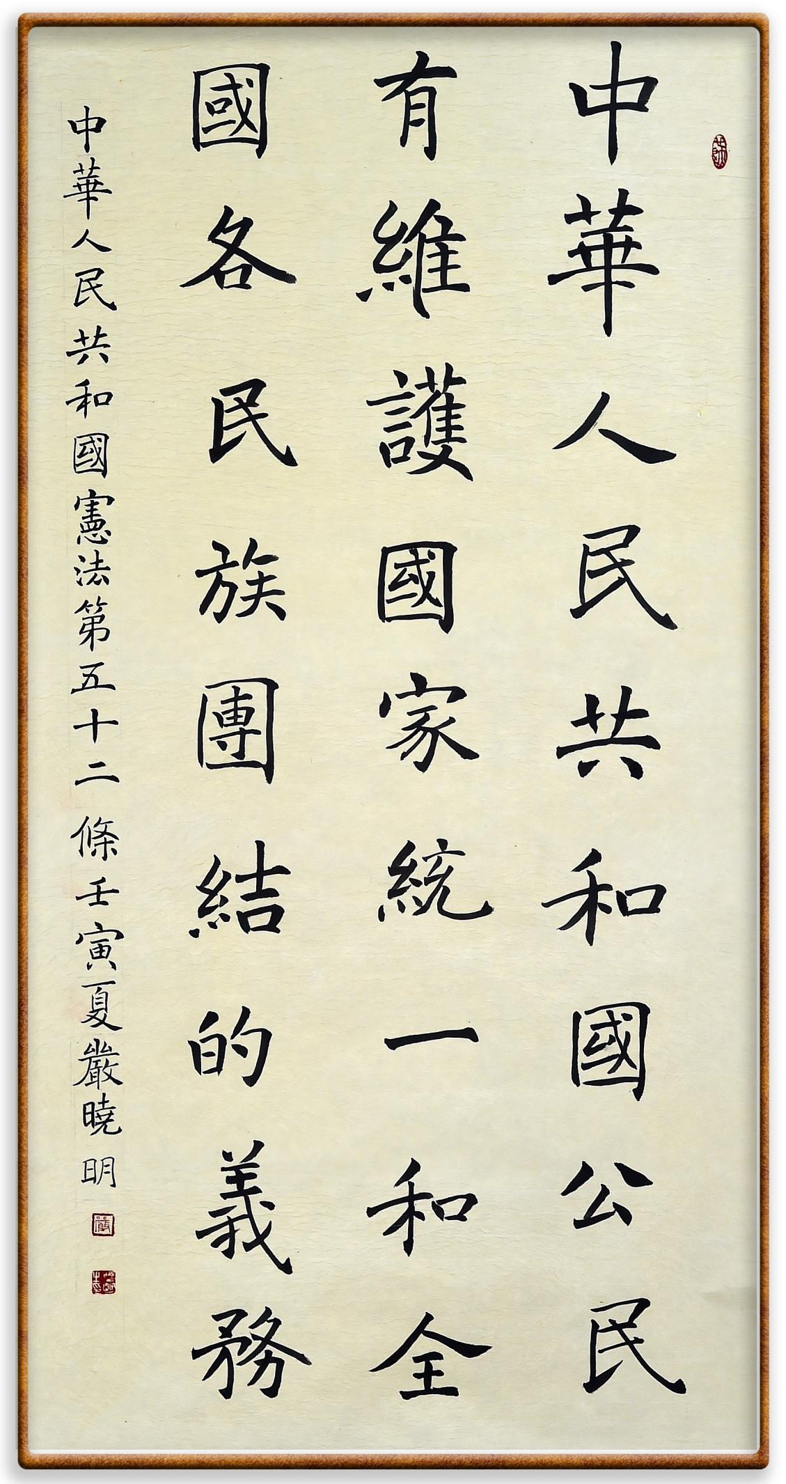 繼《中華人民共和國民法典》《中華人民共和國土地管理法》《中華人民共和國土地管理法實施條例》《中華人民共和國法律援助法》之后,法治日報社聯(lián)合北京市司法局、北京書法家協(xié)會,將筆端對準(zhǔn)《中華人民共和國憲法》和《中華人民共和國行政處罰法》。