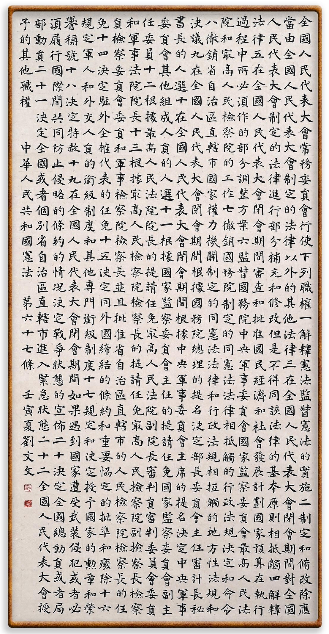 繼《中華人民共和國民法典》《中華人民共和國土地管理法》《中華人民共和國土地管理法實施條例》《中華人民共和國法律援助法》之后,法治日報社聯(lián)合北京市司法局、北京書法家協(xié)會,將筆端對準《中華人民共和國憲法》和《中華人民共和國行政處罰法》。