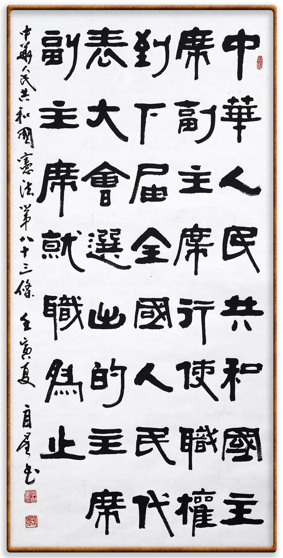 繼《中華人民共和國民法典》《中華人民共和國土地管理法》《中華人民共和國土地管理法實施條例》《中華人民共和國法律援助法》之后,法治日報社聯(lián)合北京市司法局、北京書法家協(xié)會,將筆端對準《中華人民共和國憲法》和《中華人民共和國行政處罰法》。