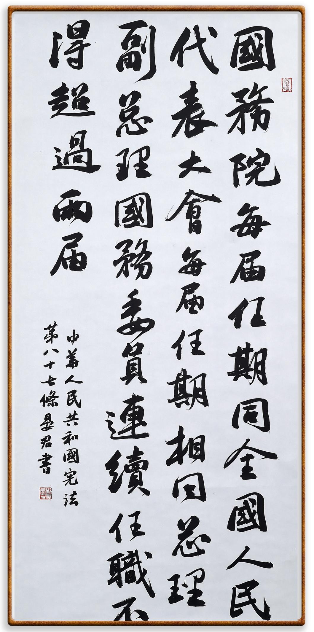 繼《中華人民共和國民法典》《中華人民共和國土地管理法》《中華人民共和國土地管理法實施條例》《中華人民共和國法律援助法》之后,法治日報社聯(lián)合北京市司法局、北京書法家協(xié)會,將筆端對準(zhǔn)《中華人民共和國憲法》和《中華人民共和國行政處罰法》。