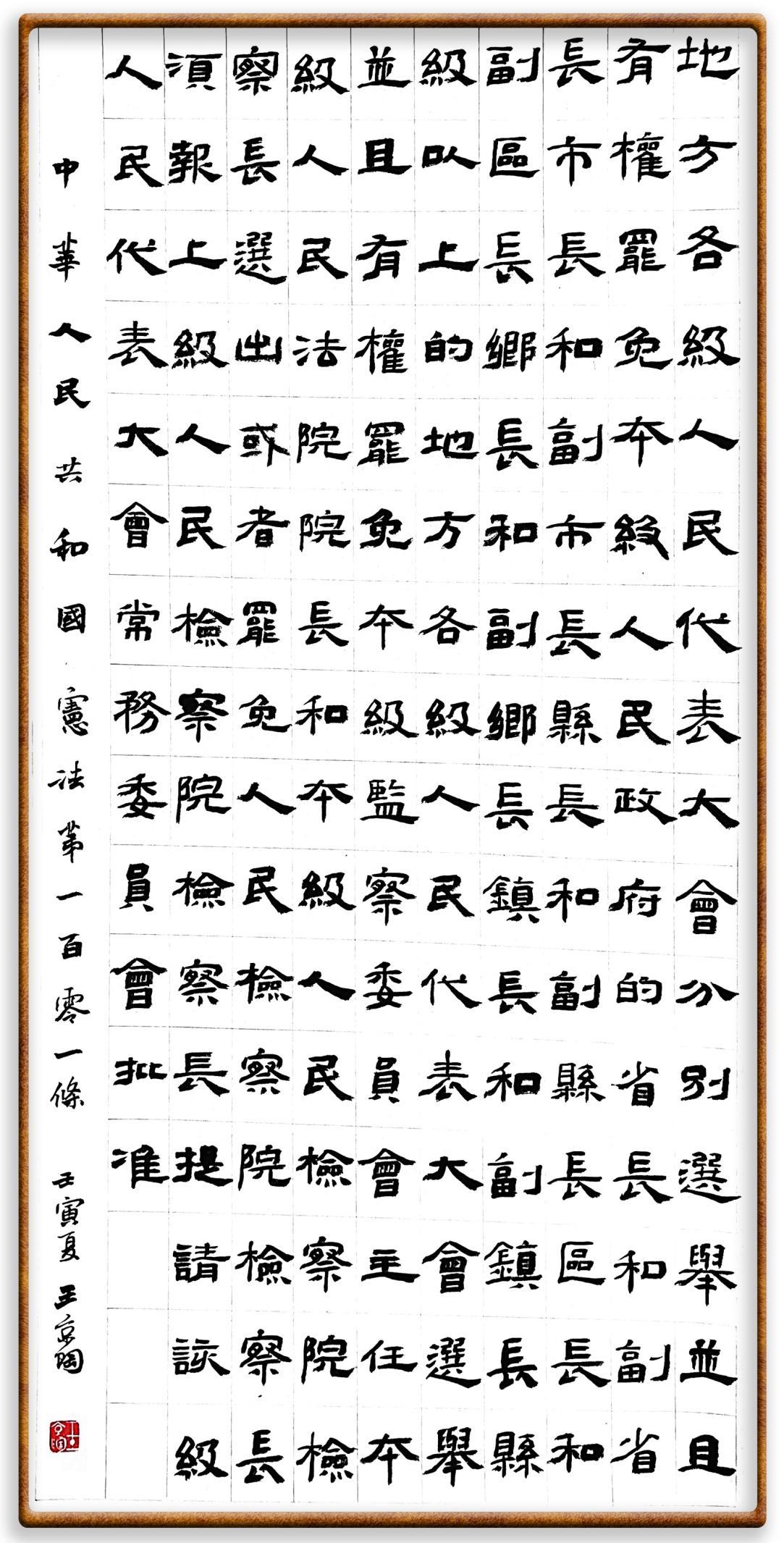 繼《中華人民共和國民法典》《中華人民共和國土地管理法》《中華人民共和國土地管理法實施條例》《中華人民共和國法律援助法》之后,法治日報社聯(lián)合北京市司法局、北京書法家協(xié)會,將筆端對準(zhǔn)《中華人民共和國憲法》和《中華人民共和國行政處罰法》。