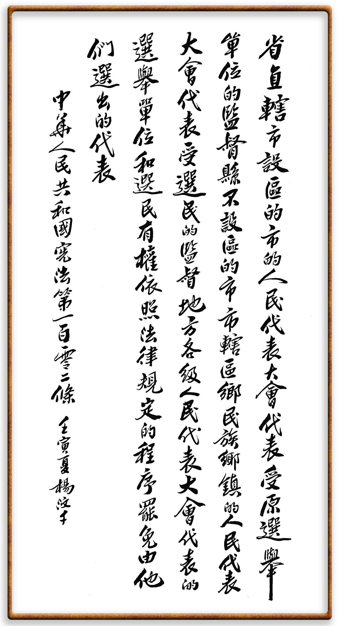 憲法第一百零二條 省、直轄市、設(shè)區(qū)的市的人民代表大會(huì)代表受原選舉單位的監(jiān)督;縣、不設(shè)區(qū)的市、市轄區(qū)、鄉(xiāng)、民族鄉(xiāng)、鎮(zhèn)的人民代表大會(huì)代表受選民的監(jiān)督。