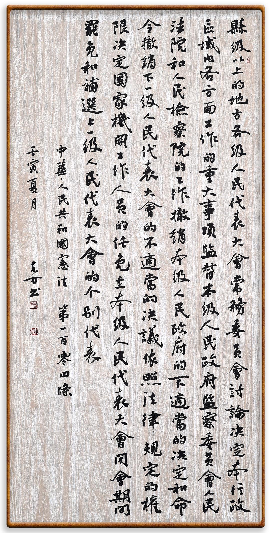 繼《中華人民共和國(guó)民法典》《中華人民共和國(guó)土地管理法》《中華人民共和國(guó)土地管理法實(shí)施條例》《中華人民共和國(guó)法律援助法》之后,法治日?qǐng)?bào)社聯(lián)合北京市司法局、北京書(shū)法家協(xié)會(huì),將筆端對(duì)準(zhǔn)《中華人民共和國(guó)憲法》和《中華人民共和國(guó)行政處罰法》。