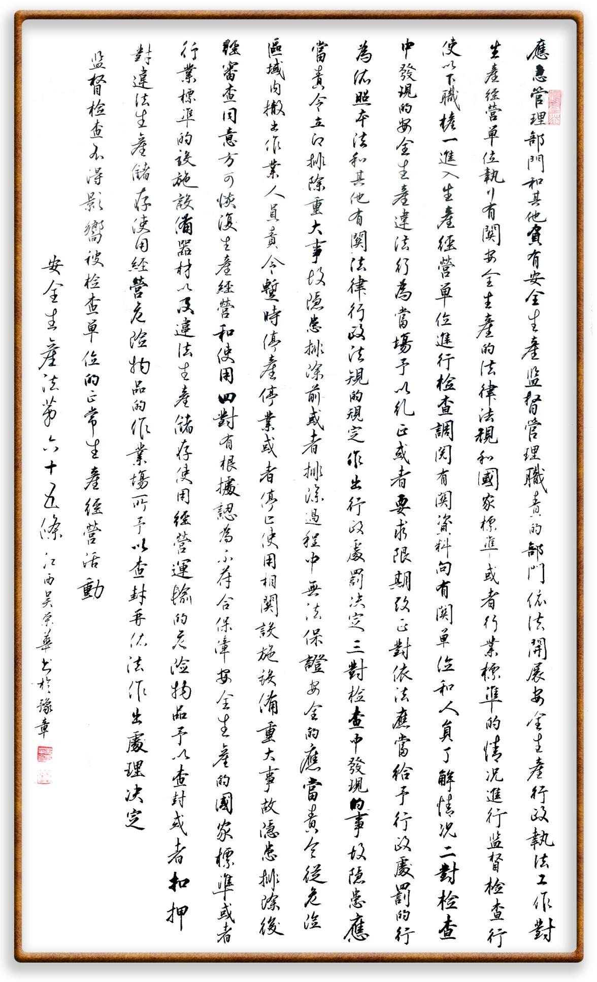 安全生產(chǎn)法第六十五條 應(yīng)急管理部門和其他負(fù)有安全生產(chǎn)監(jiān)督管理職責(zé)的部門依法開展安全生產(chǎn)行政執(zhí)法工作,對(duì)生產(chǎn)經(jīng)營單位執(zhí)行有關(guān)安全生產(chǎn)的法律、法規(guī)和國家標(biāo)準(zhǔn)或者行業(yè)標(biāo)準(zhǔn)的情況進(jìn)行監(jiān)督檢查,行使以下職權(quán):