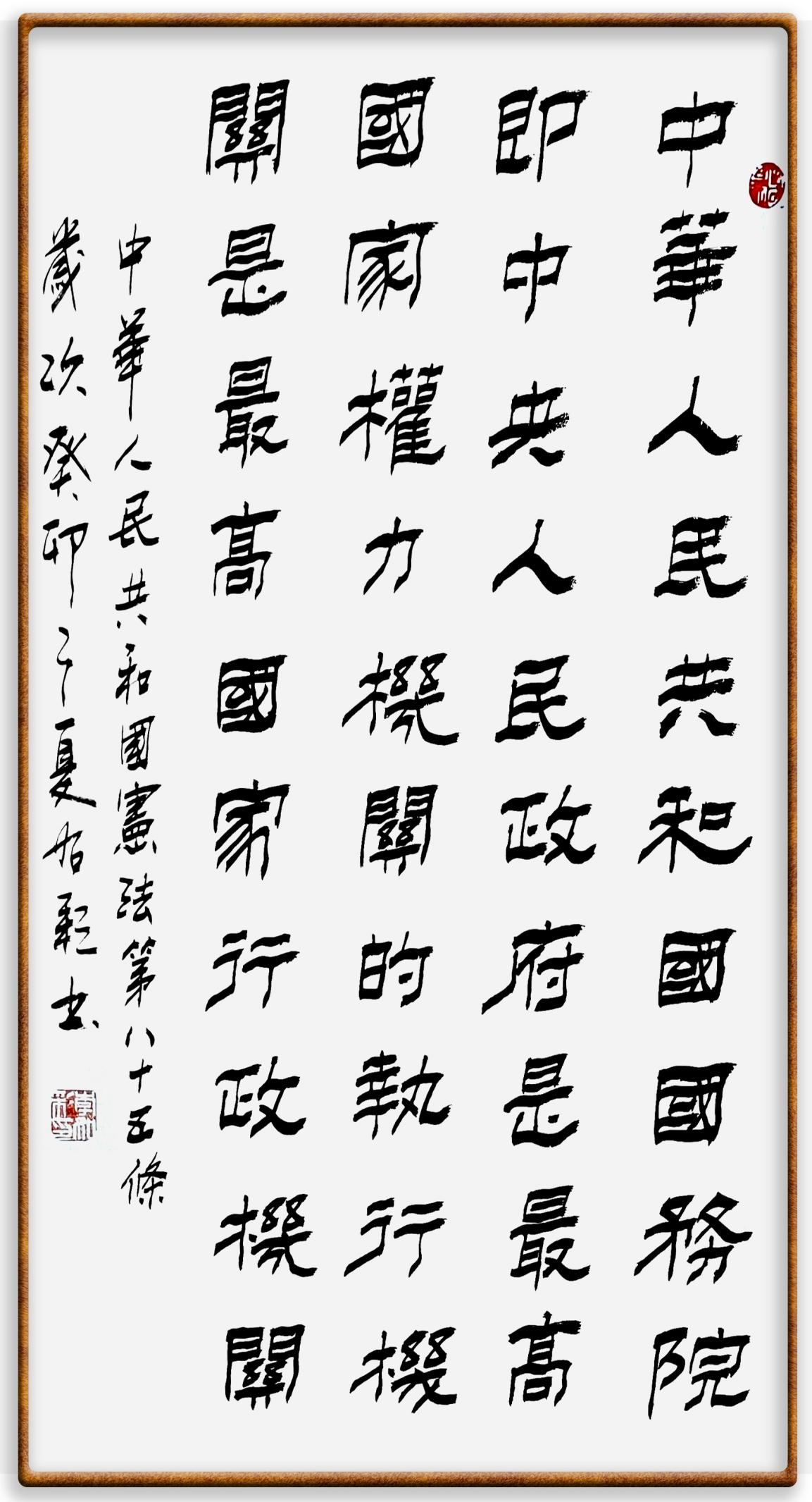 繼《中華人民共和國民法典》《中華人民共和國土地管理法》《中華人民共和國土地管理法實(shí)施條例》《中華人民共和國法律援助法》之后,法治日報社聯(lián)合北京市司法局、北京書法家協(xié)會,將筆端對準(zhǔn)《中華人民共和國憲法》和《中華人民共和國行政處罰法》。