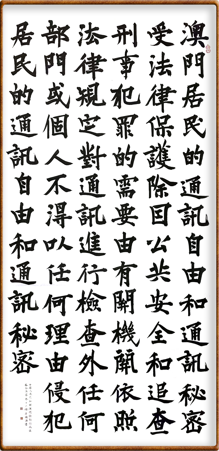 澳門基本法第三十二條 澳門居民的通訊自由和通訊秘密受法律保護(hù)。除因公共安全和追查刑事犯罪的需要,由有關(guān)機(jī)關(guān)依照法律規(guī)定對(duì)通訊進(jìn)行檢查外,任何部門或個(gè)人不得以任何理由侵犯居民的通訊自由和通訊秘密。
