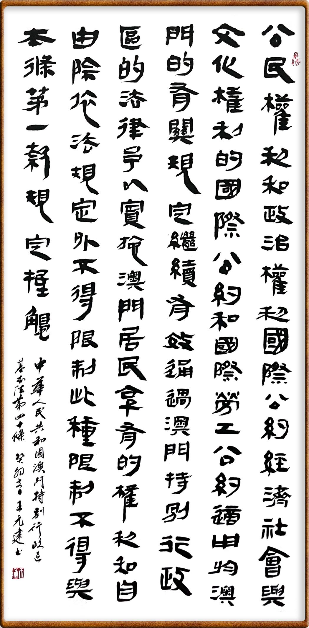 澳門基本法第四十條 《公民權(quán)利和政治權(quán)利國(guó)際公約》、《經(jīng)濟(jì)、社會(huì)與文化權(quán)利的國(guó)際公約》和國(guó)際勞工公約適用于澳門的有關(guān)規(guī)定繼續(xù)有效,通過澳門特別行政區(qū)的法律予以實(shí)施。