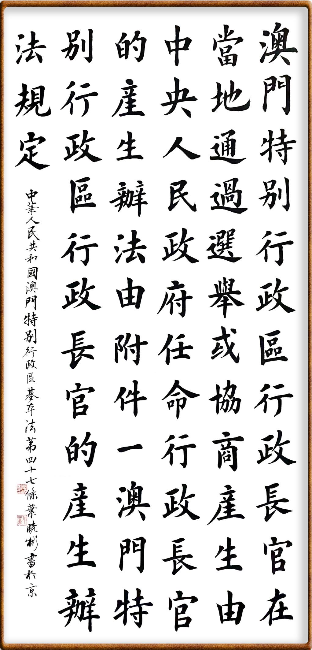 澳門基本法第四十七條 澳門特別行政區(qū)行政長官在當?shù)赝ㄟ^選舉或協(xié)商產(chǎn)生,由中央人民政府任命。