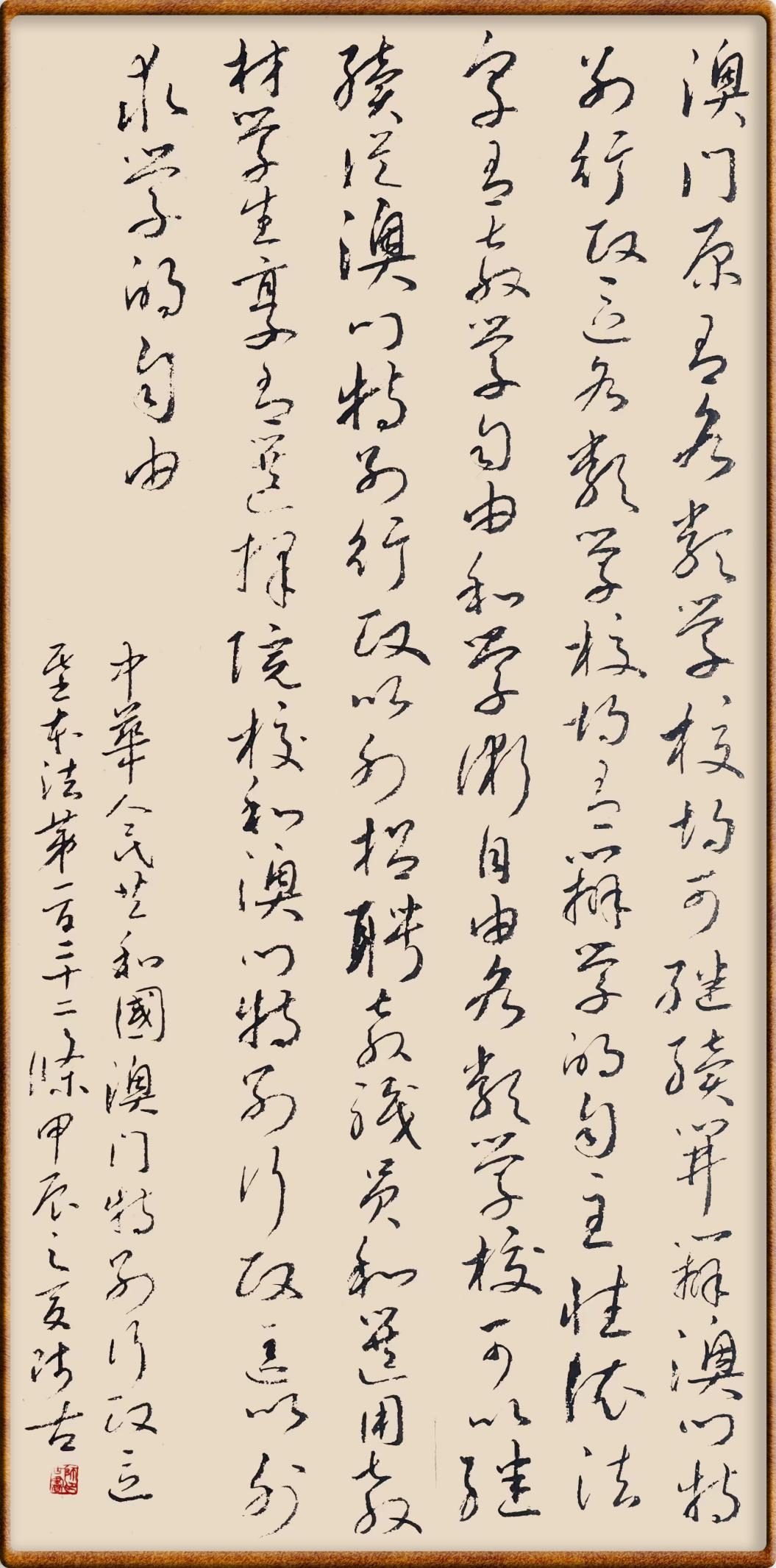 澳門基本法第一百二十二條 澳門原有各類學(xué)校均可繼續(xù)開辦。澳門特別行政區(qū)各類學(xué)校均有辦學(xué)的自主性,依法享有教學(xué)自由和學(xué)術(shù)自由。