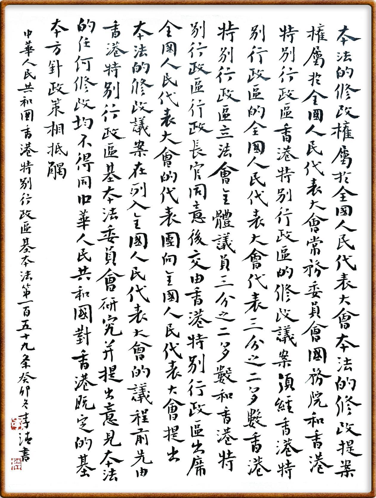 香港基本法第一百五十九條 本法的修改權屬于全國人民代表大會。