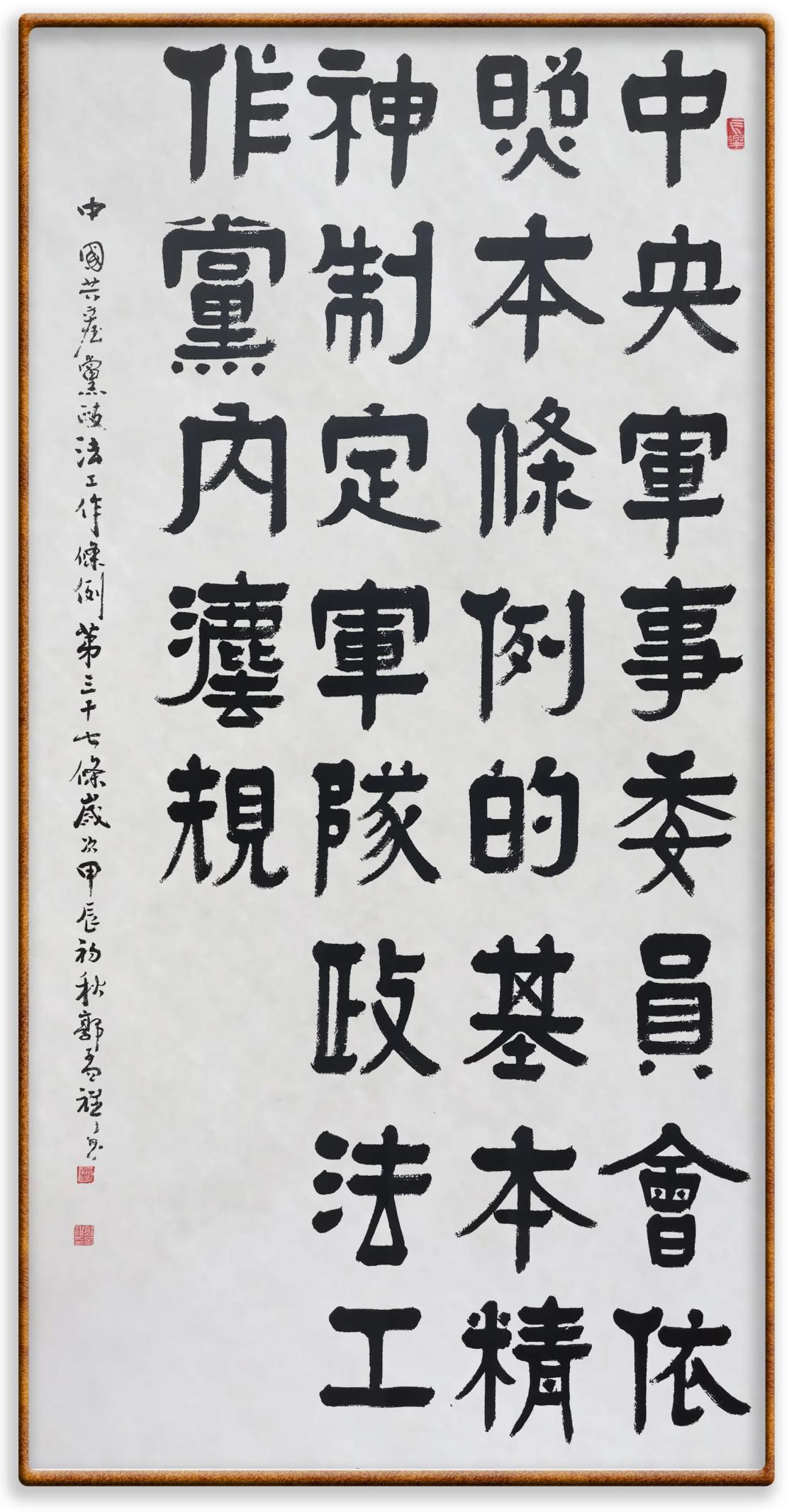 《中國(guó)共產(chǎn)黨政法工作條例》對(duì)黨領(lǐng)導(dǎo)新時(shí)代政法工作進(jìn)行全面制度擘畫(huà),為黨領(lǐng)導(dǎo)政法工作提供基本遵循,具有重大而深遠(yuǎn)的意義。為學(xué)習(xí)好、宣傳好、貫徹好、實(shí)施好這部黨內(nèi)法規(guī),繼《中華人民共和國(guó)民法典》《中華人民共和國(guó)憲法》《信訪工作條例》《中華人民共和國(guó)澳門(mén)特別行政區(qū)基本法》《中華人民共和國(guó)香港特別行政區(qū)基本法》等法律法規(guī)之后,“書(shū)·法”系列活動(dòng)將筆端對(duì)準(zhǔn)《中國(guó)共產(chǎn)黨政法工作條例》。