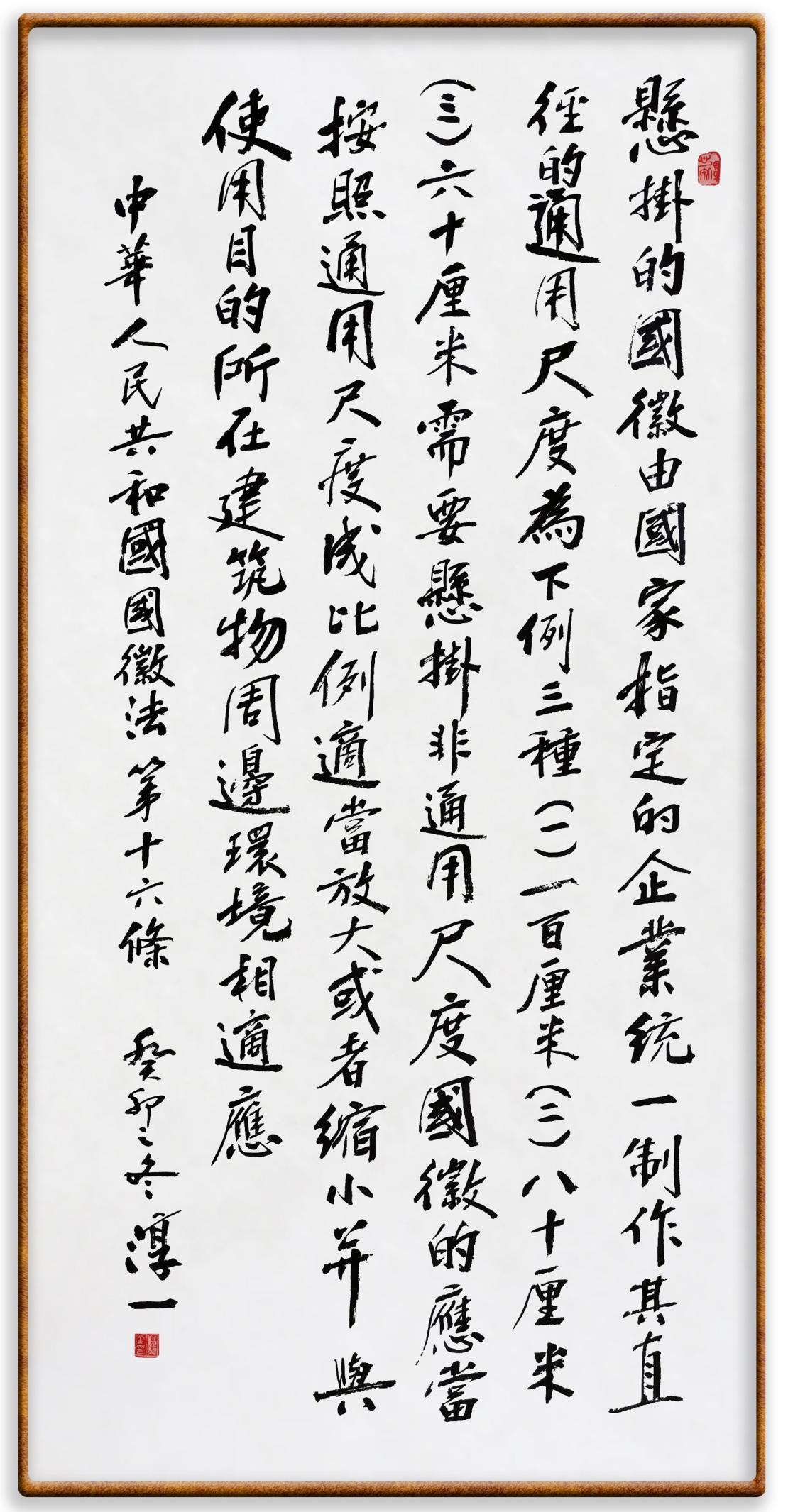 需要懸掛非通用尺度國徽的,應當按照通用尺度成比例適當放大或者縮小,并與使用目的、所在建筑物、周邊環(huán)境相適應。
